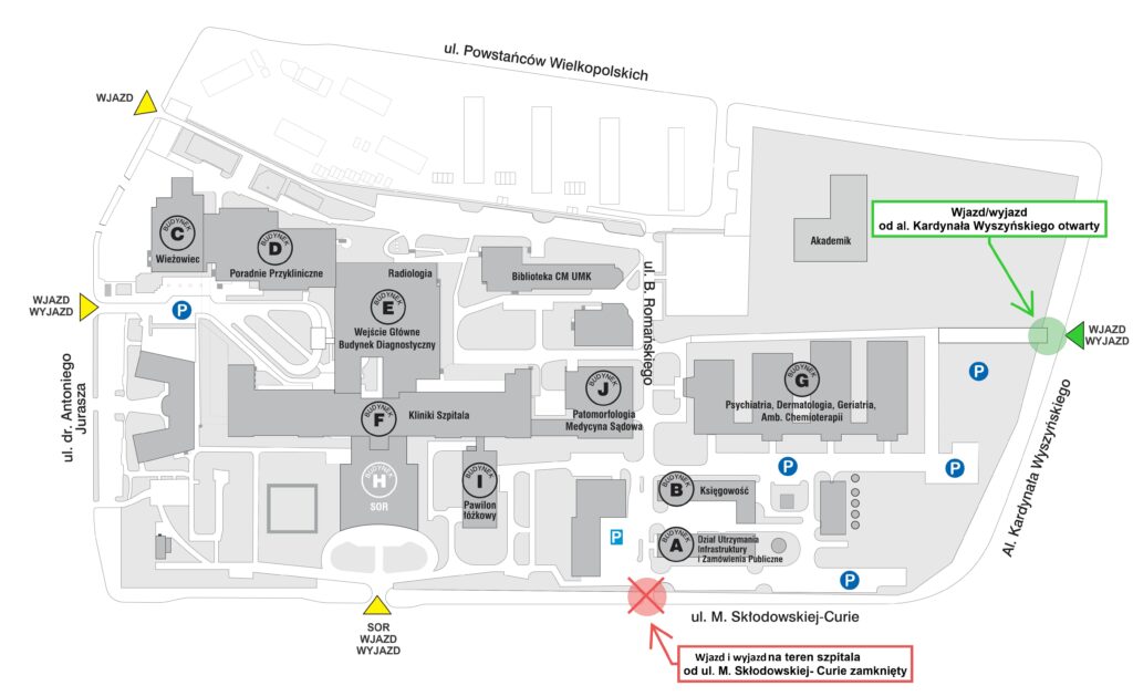 Informacja o zmianie organizacji ruchu na terenie szpitala - Szpital Uniwersytecki im. A. Jurasza